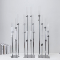 테이블 센터 피스 파티 장식 캔들 홀더 8 팔 실버 금속 키 큰 결혼식 촛대 허리케인과 함께